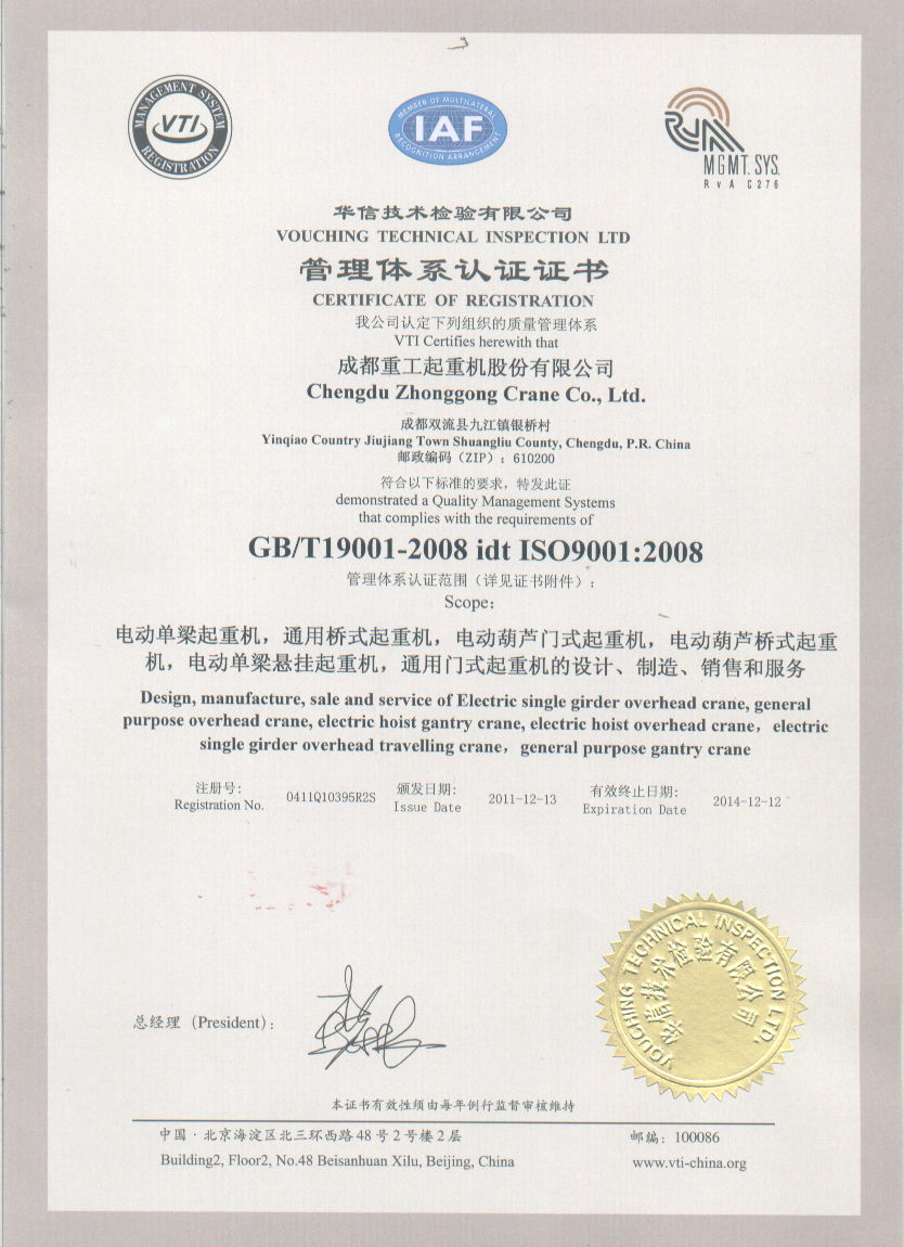 成都重工起重機股份有限公司©2009 版權所有 地址 : 成都市雙流西南航空港經濟開發區空港三路903號  郵政編碼: 610200